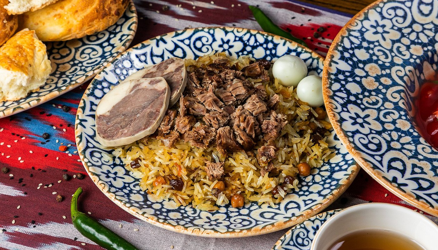 Uzbek cuisine is a culinary treasure shaped by centuries of cross-cultural exchange along the Silk Road. It is known for its rich flavors, generous portions, and hearty ingredients. The national dish, plov, is a fragrant rice dish cooked with meat, carrots, and spices — often served at weddings and large gatherings. Other favorites include manty (juicy steamed dumplings), shurpa (hearty meat soup), and non (traditional round bread baked in clay ovens). Meals are often shared communally, reinforcing family bonds and the spirit of hospitality. Uzbek food is not only nourishing but also symbolic — a connection between people, history, and the joy of gathering together.